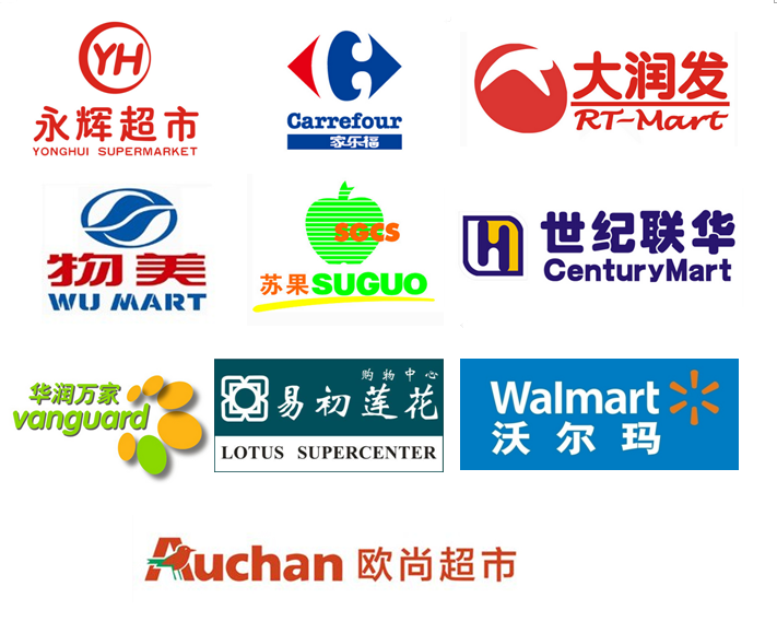 实体店铺合作伙伴名称:家乐福、物美、世纪联华、苏果、永辉、沃尔玛、大润发、华润万家、易初莲花、欧尚、北京华联……